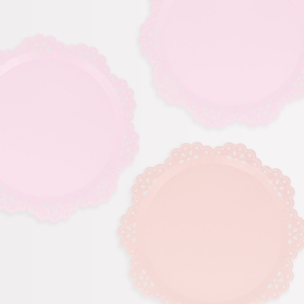 - This pretty party range is inspired by broderie anglaise, a delicate eyelet embroidery design that is back in style. Teamed with pink and peach colors and embossed details, this is the perfect range for bridal showers and baby showers. The large dinner plates are ideal for table layering and can be used as serving plates too.