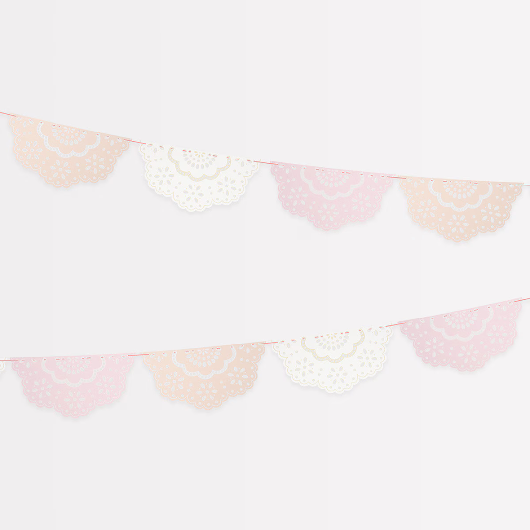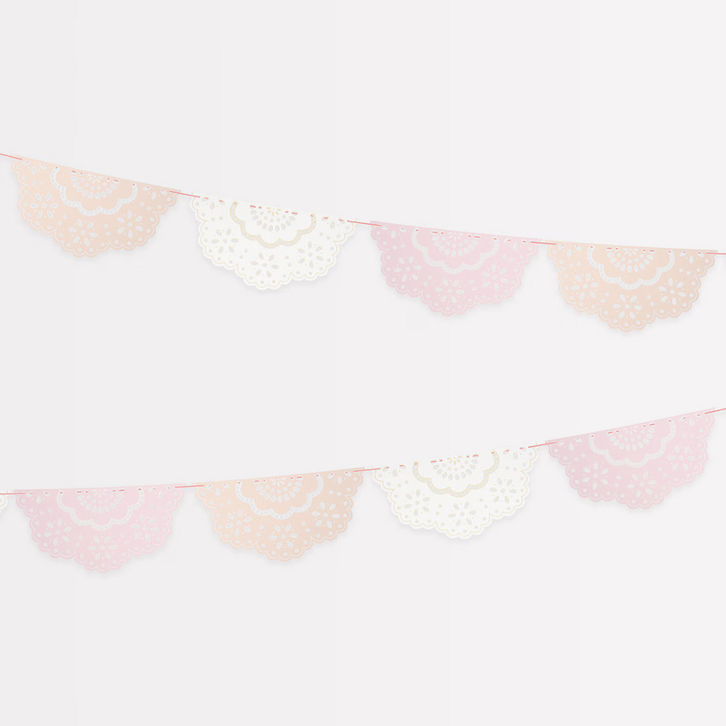 This pretty party range is inspired by broderie anglaise, a delicate lace eyelet embroidery design that's back in style. It's perfect to hang in the porch or doorway, on the wall or draped on the party table – ideal for a bridal shower or a baby shower. It's beautifully packaged in a paper envelope, idea to store the garland in to re-use time and time again, and to make it special to give as a fabulous decorative gift too.